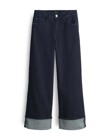 Mit verkürztem Bein, breitem Umschlag im Selvedge Stil und dunkler Rinsed Waschung präsentiert sich diese Denim als modernes Statement Piece. Die markanten Details machen ihn zum vielseitigen Favoriten für lässige Looks.