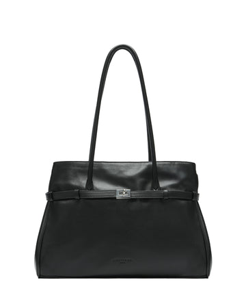 Nori Satchel L bringt Größe und Struktur auf den Punkt. Gefertigt aus weichem Kalbsleder, kombiniert sie ein geradliniges Design mit durchdachter Funktion. Die dekorative Schließe auf der Front verleiht der Tasche einen charakteristischen Akzent, während seitliche Druckknöpfe ihre Breite variabel halten – je nach Anlass oder Inhalt. Im Inneren sorgen ein großes Steckfach und ein Reißverschlussfach für Übersicht. Zwei stabile Tragehenkel garantieren Komfort, ganz gleich, wie der Tag verläuft.